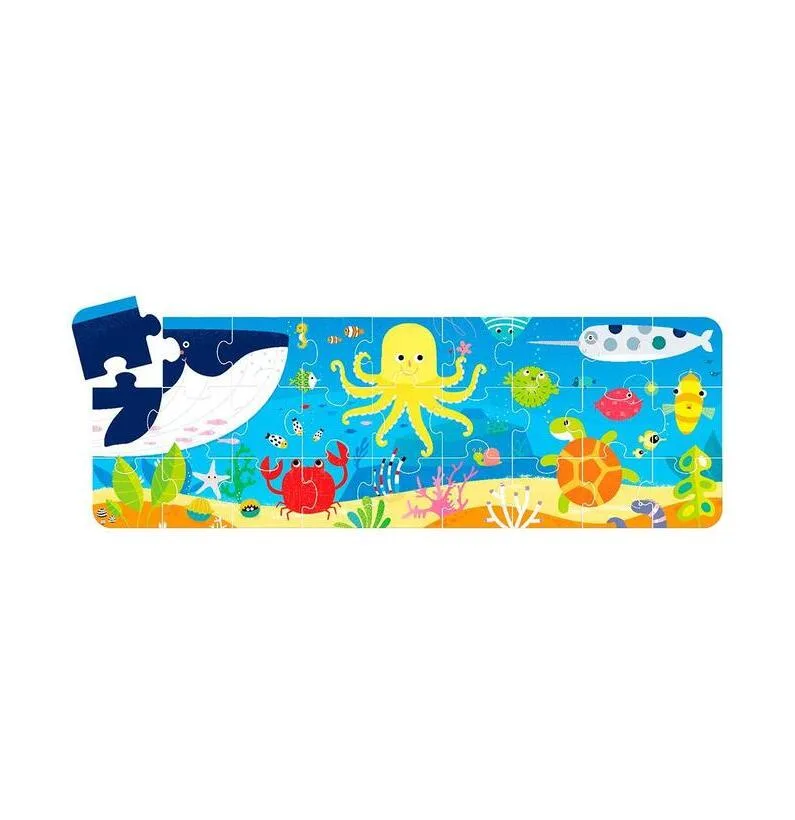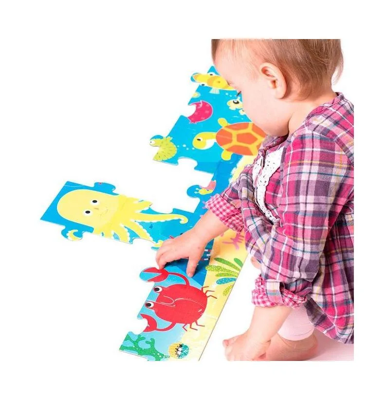 Descobre o fascinante mundo dos animais marinhos com este puzzle gigante de 40 peças extragrandes, perfeitas para mãos pequenas. Aprende os nomes, explora cores vibrantes e desenvolve a coordenação motora enquanto te divertes.