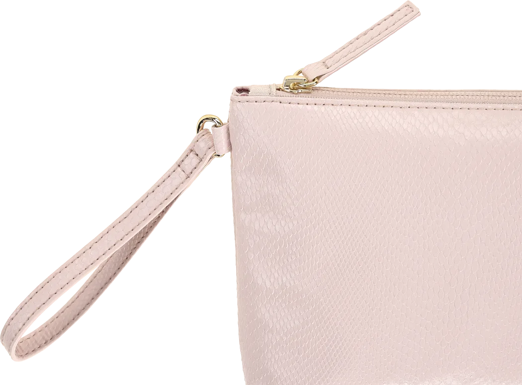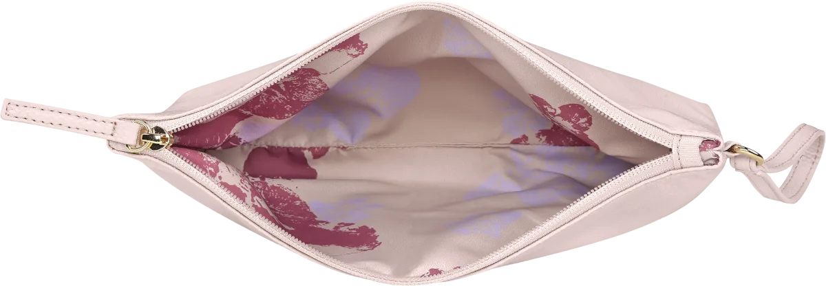 Bolsa com alça para o pulso, os detalhes são em metal dourado brilhante e o forro especial tem o padrão Sakura.